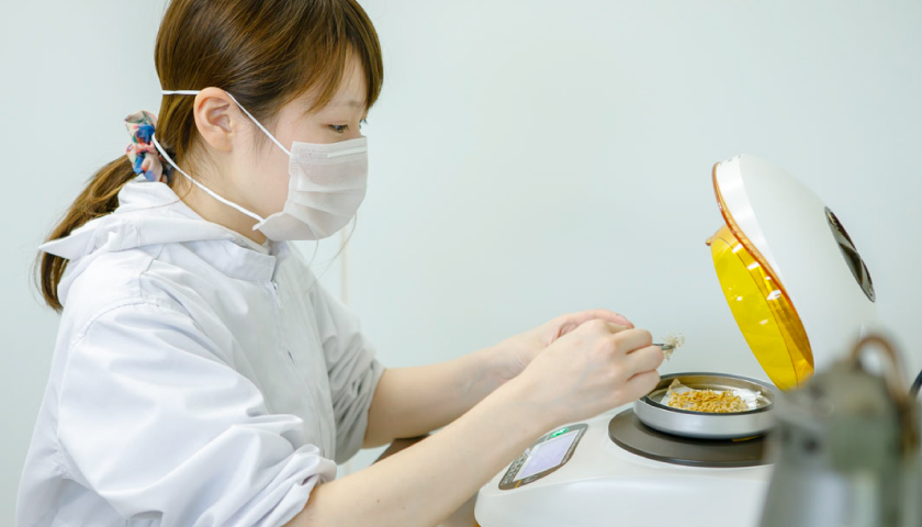 商品開発をしています。具体的には営業やお客様からこんな商品が欲しい、というアイデアを頂き、原料などの情報は先輩社員から得てそこから何ができるかということをまずは考えます。そして試作、試食を繰り返し、味を調節して何度も試行錯誤しながら商品化にこぎつけます。完成後も、一定の味や安全性を保つための品質管理をしていく事も仕事のひとつです。